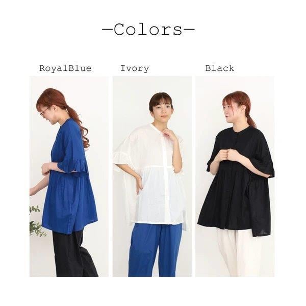 袖のフリルがかわいいボリュームたっぷりのチュニック。前後着用できて使い回し抜群。滑らかな風合いのインド綿使用。程よい透け感のある生地でレイヤードアイテムとして、長い季節使える1着。