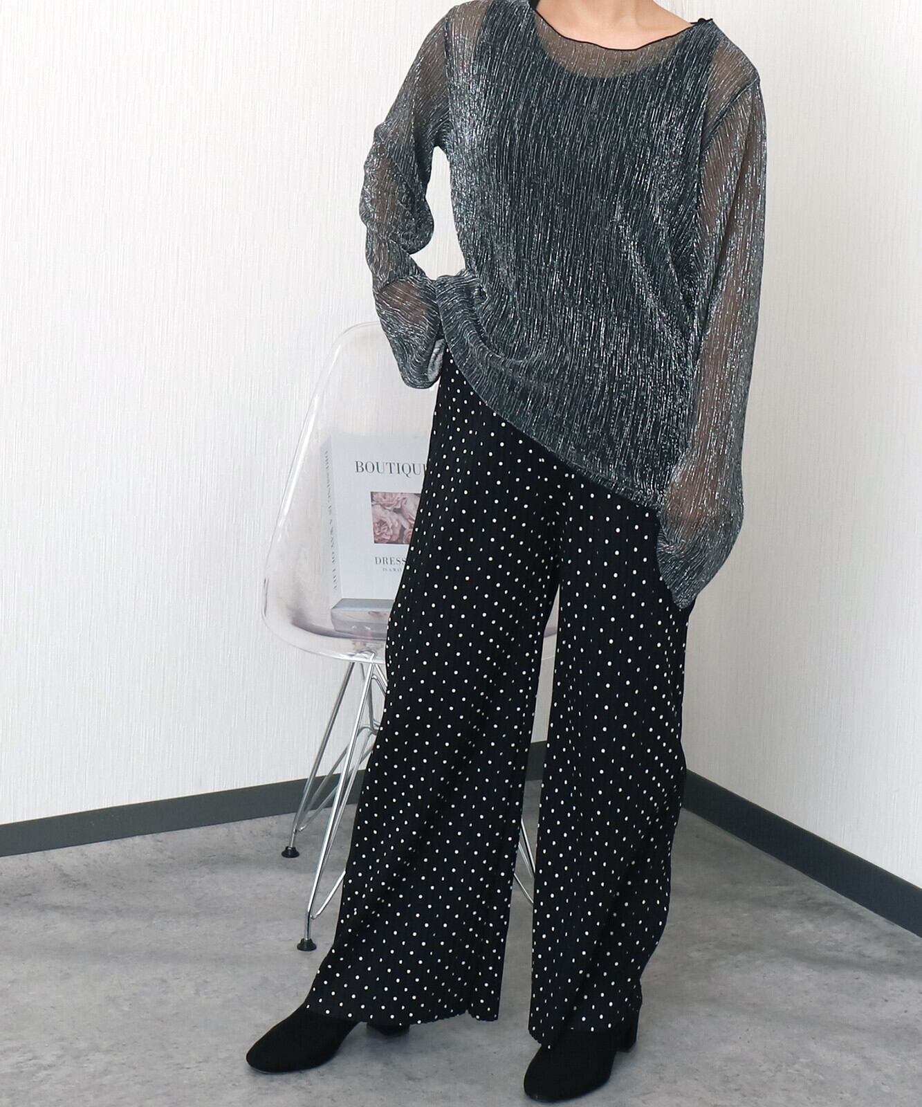 チェック柄 ドット柄 BOXプリーツパンツ