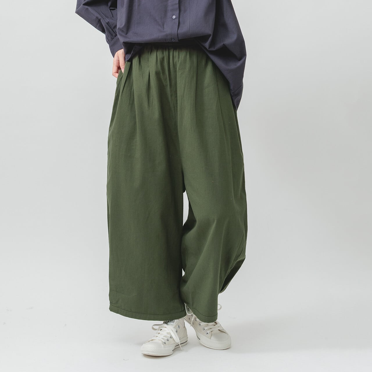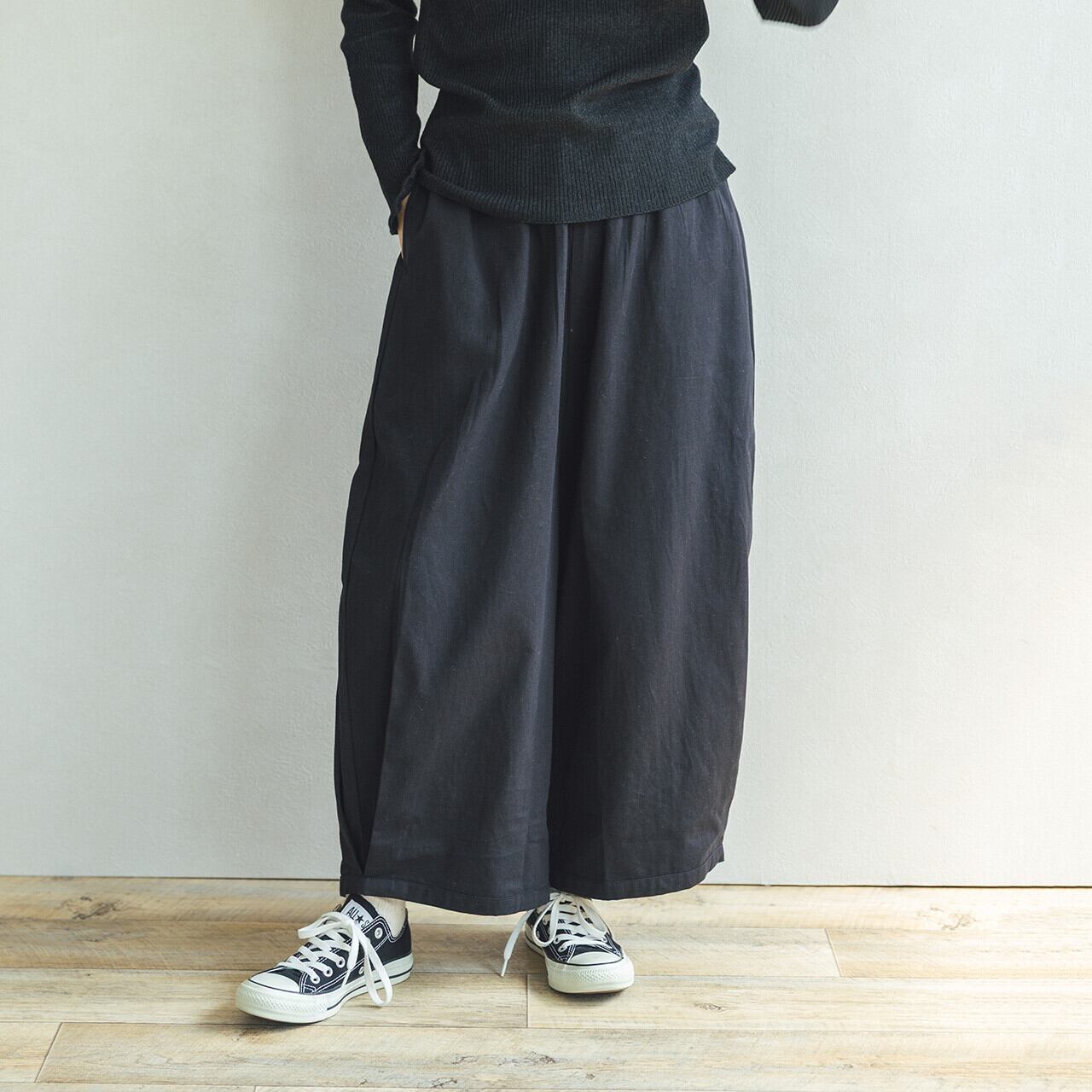 体型カバーできる 裾タック×裏地裾ゴムコットンコクーンパンツ