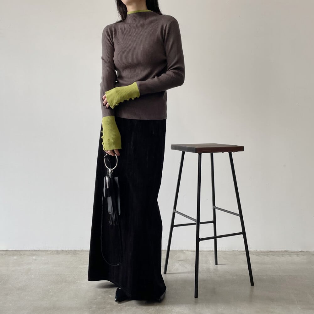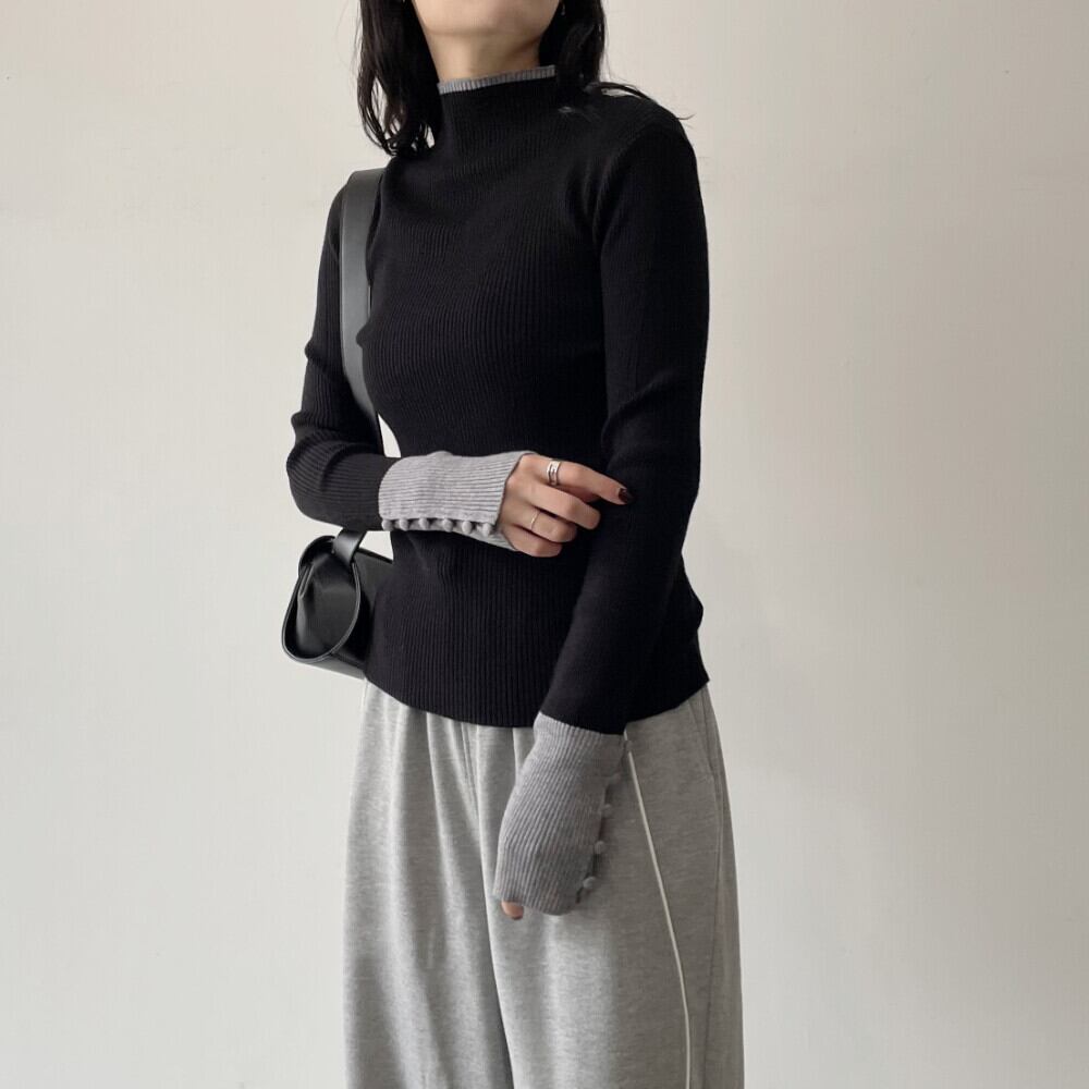 【design point】・指穴あき仕様で1枚ではもちろんレイヤードにもおすすめのアイテム・ボトムスを選ばず幅広いスタイリングをお楽しみいただけます◎・なめらかな肌触りで伸縮性も抜群な素材感