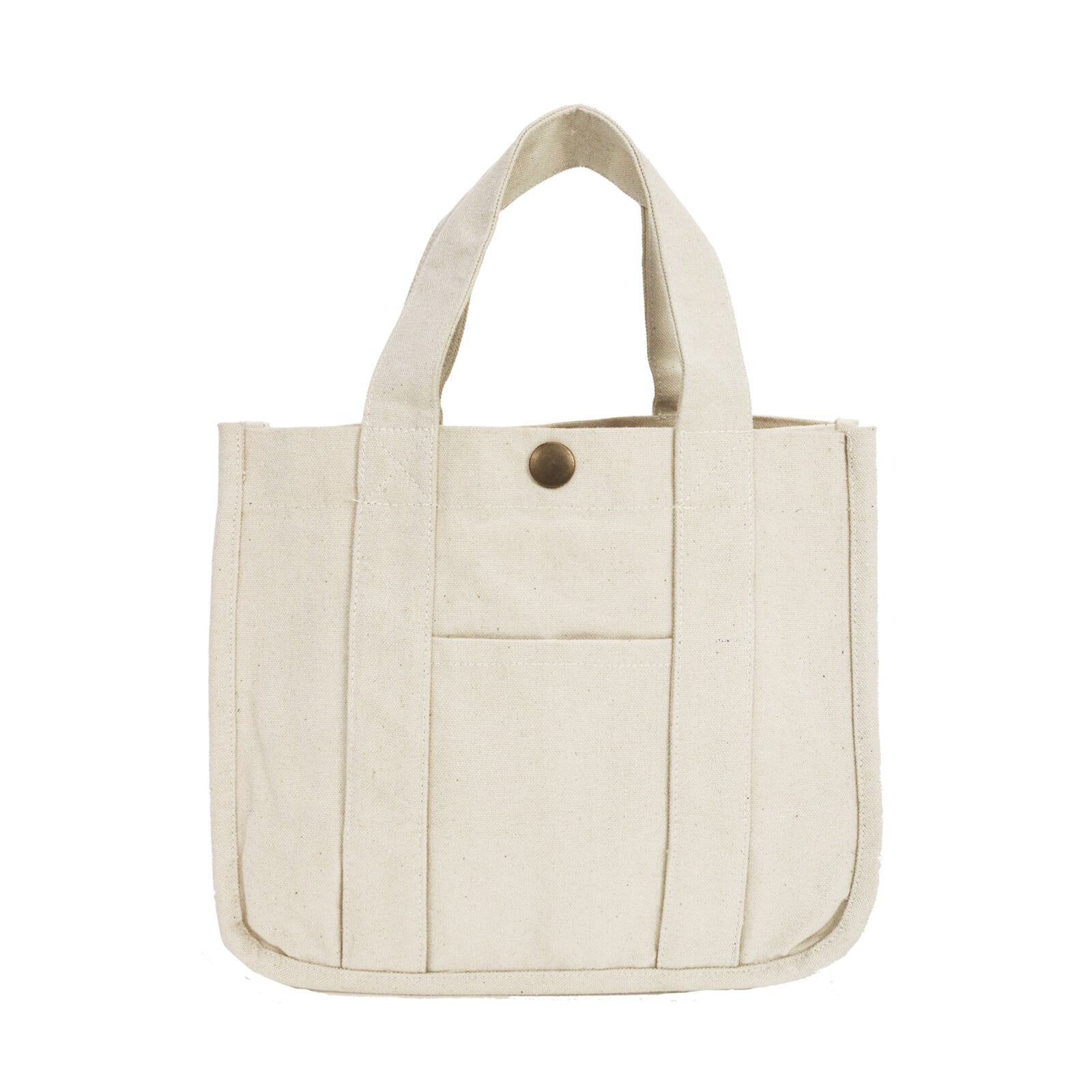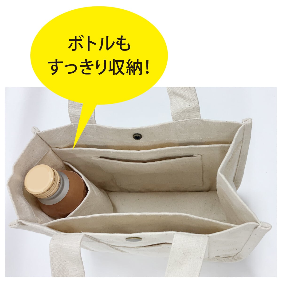 角が丸くて優しい印象のシンプルな帆布のトートです。ちょっとしたお出かけにも使いやすいサイズ感と、中の大きめポケットで荷物もスッキリ整理できます。