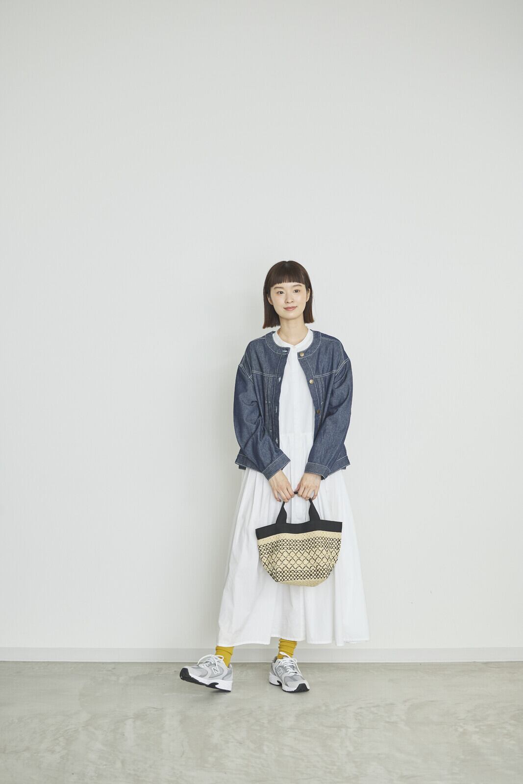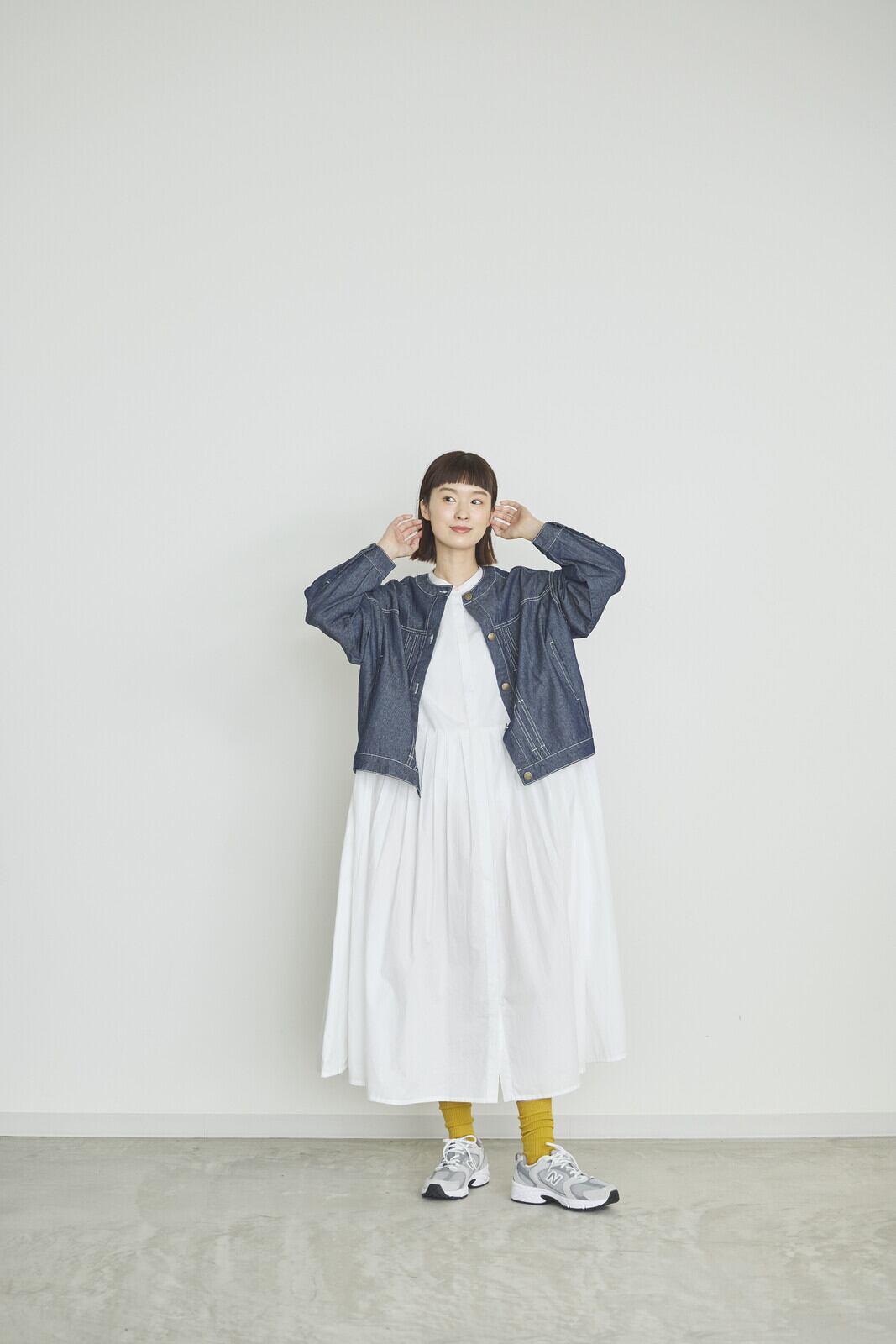 ノーカラーでスッキリとした衿元が女性らしいジャケット。標準よりやや薄手のデニム生地は、ごわつきも少ないのでさらっと着用頂けます。