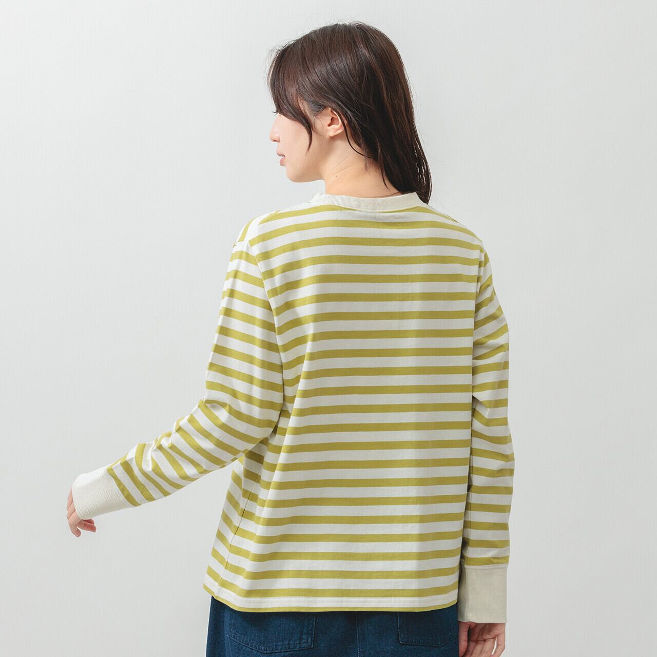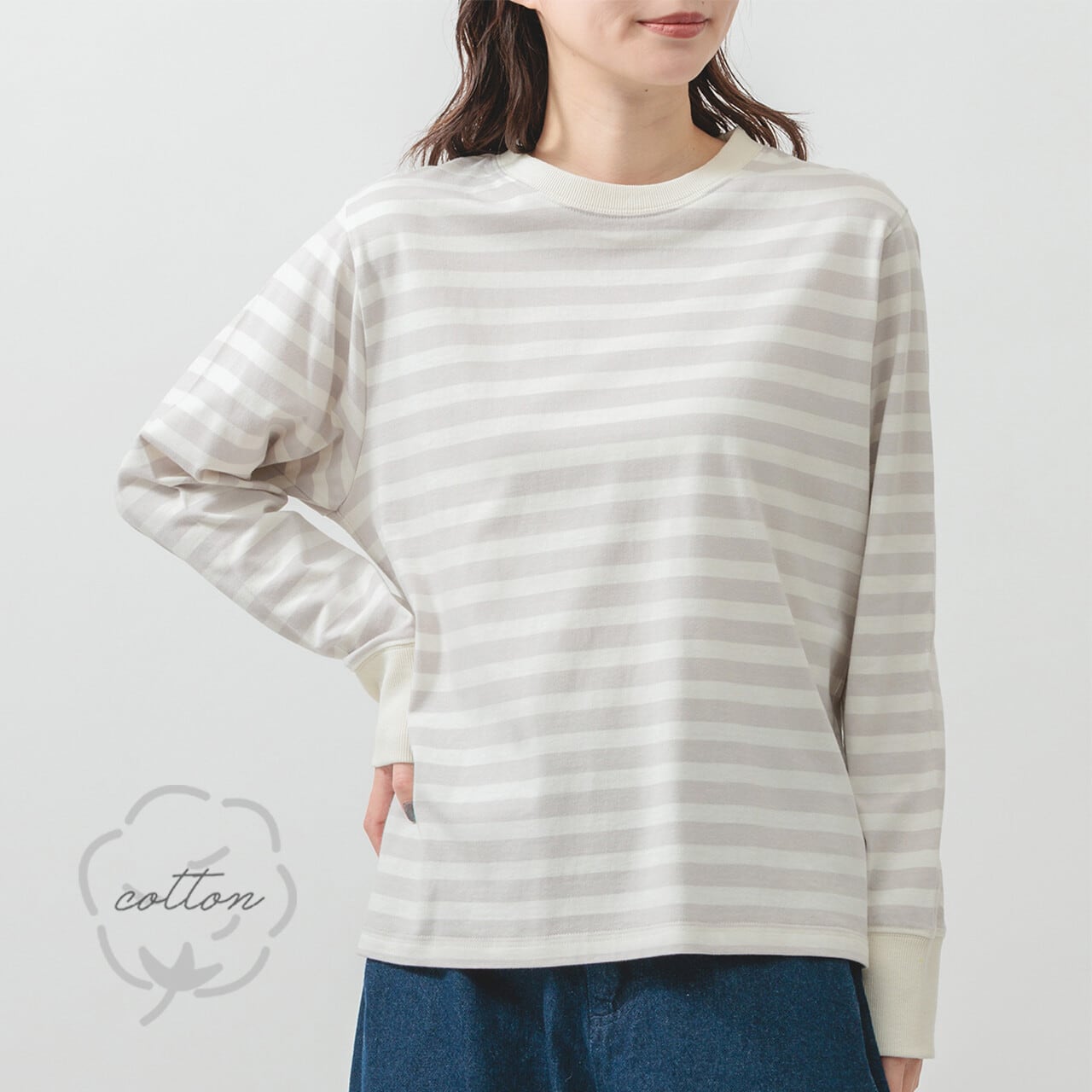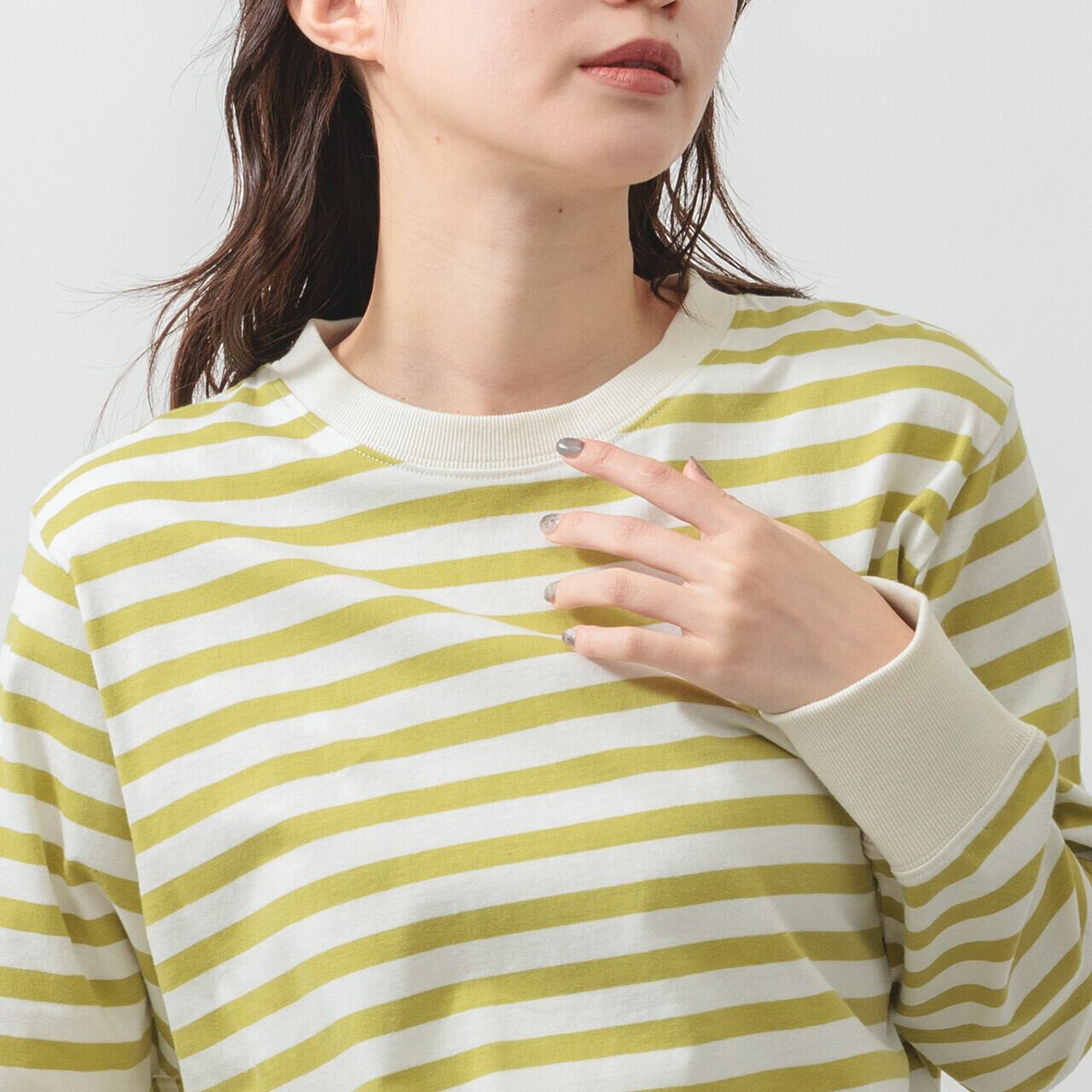 春のおしゃれに欠かせない定番ボーダー。明るい配色が顔まわりを華やかに見せ、大人のカジュアルにこなれ感をプラスします。綿100%で着心地がよく、リラックスシルエットでデイリーに活躍。通年で売れる鉄板トップスです。