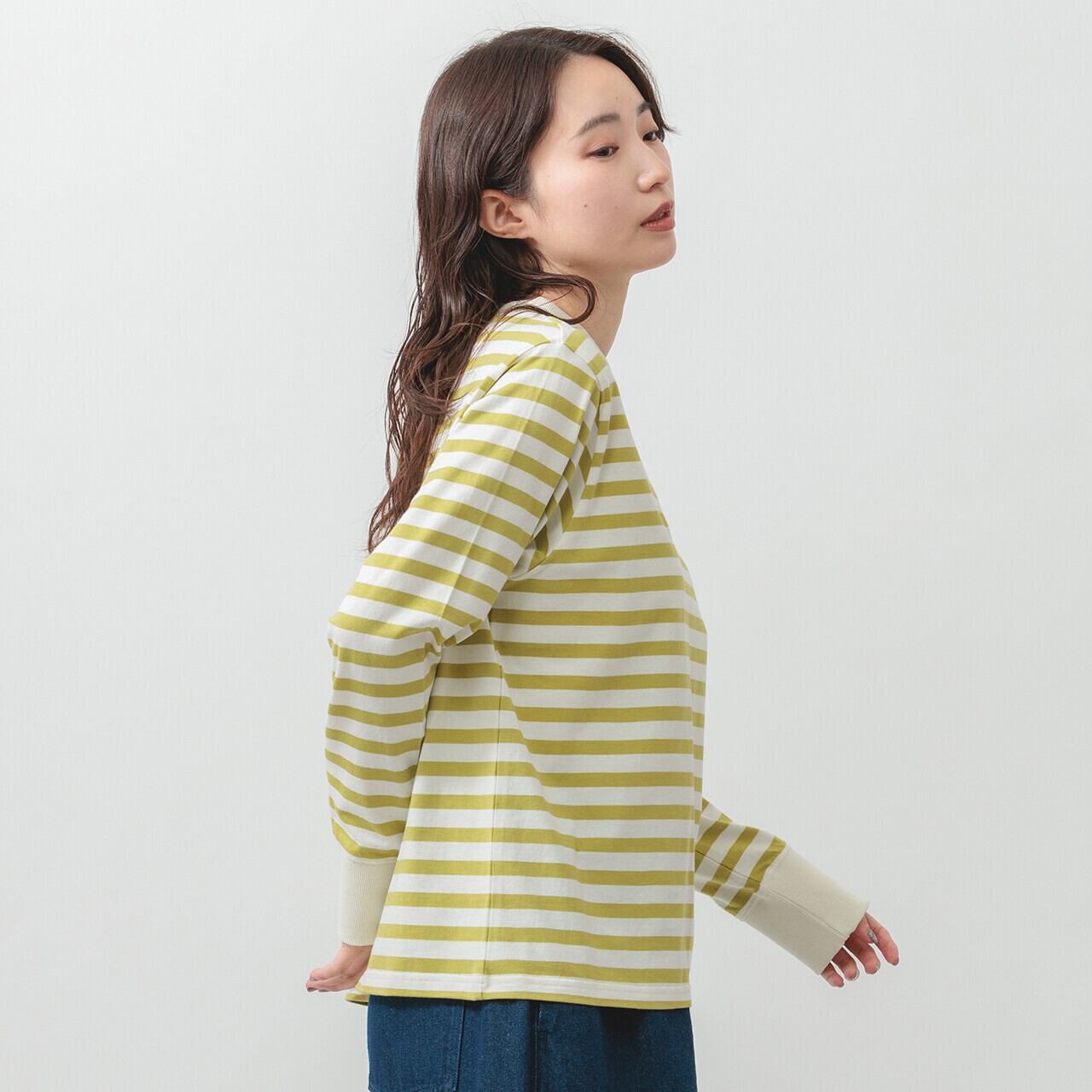 (本体:20/-天竺180g ボーダー/リブ:リブ編み)