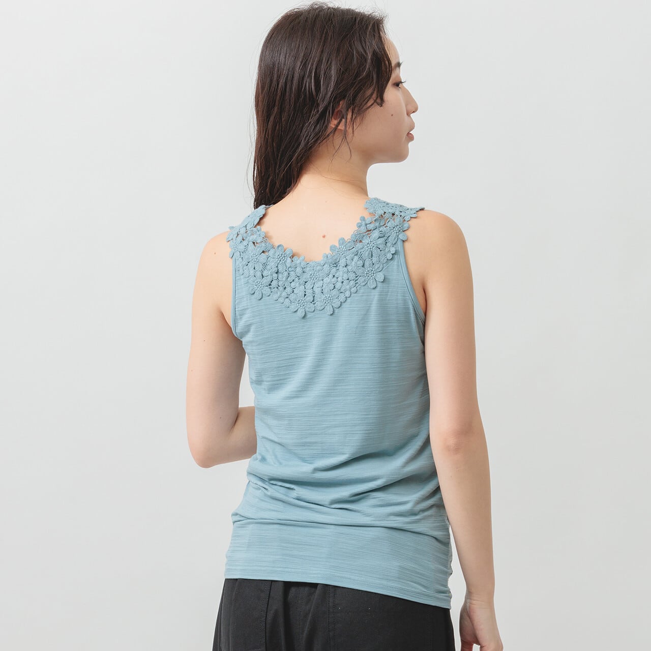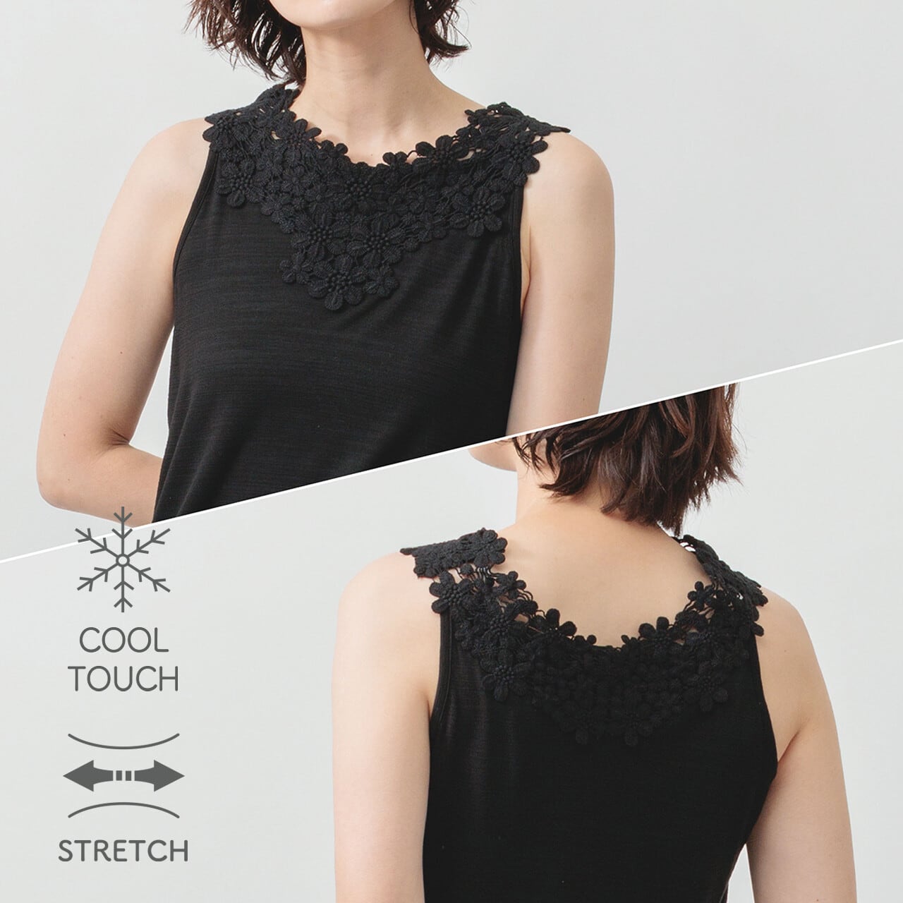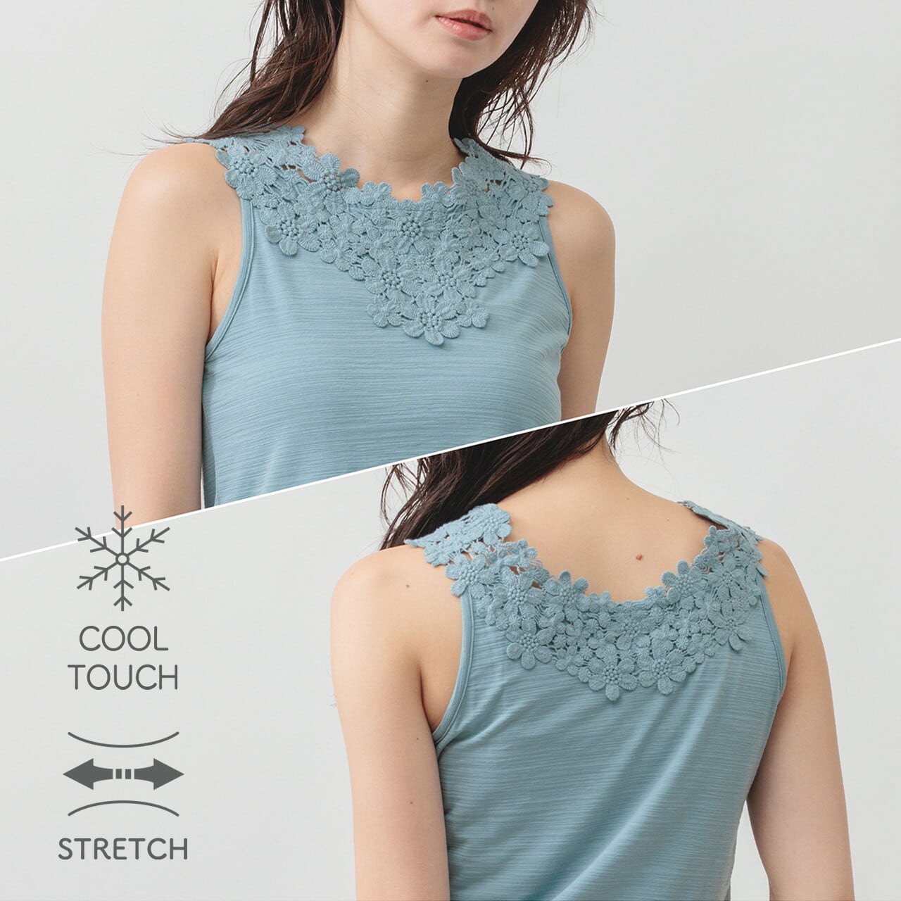 接触冷感モチーフレースタンクトップ