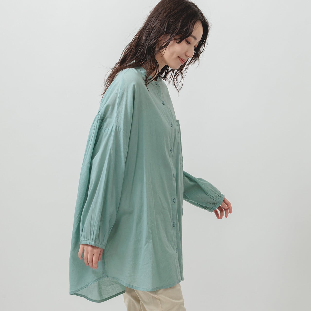 長袖/前プラボタン身生地同色/バンドカラー袖口ゴム
